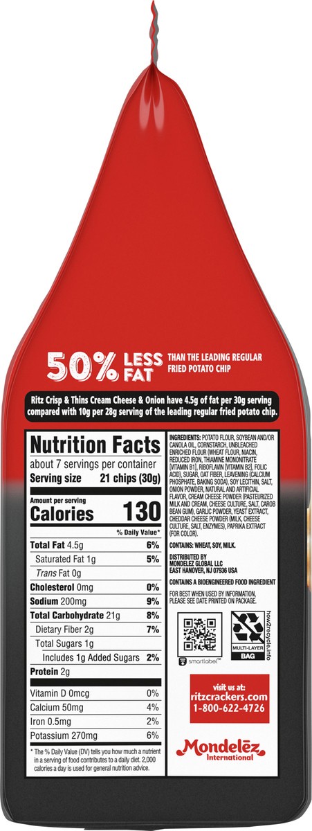 Ritz Crisp And Thins Cream Cheese And Onion Chips - 7.1 Oz