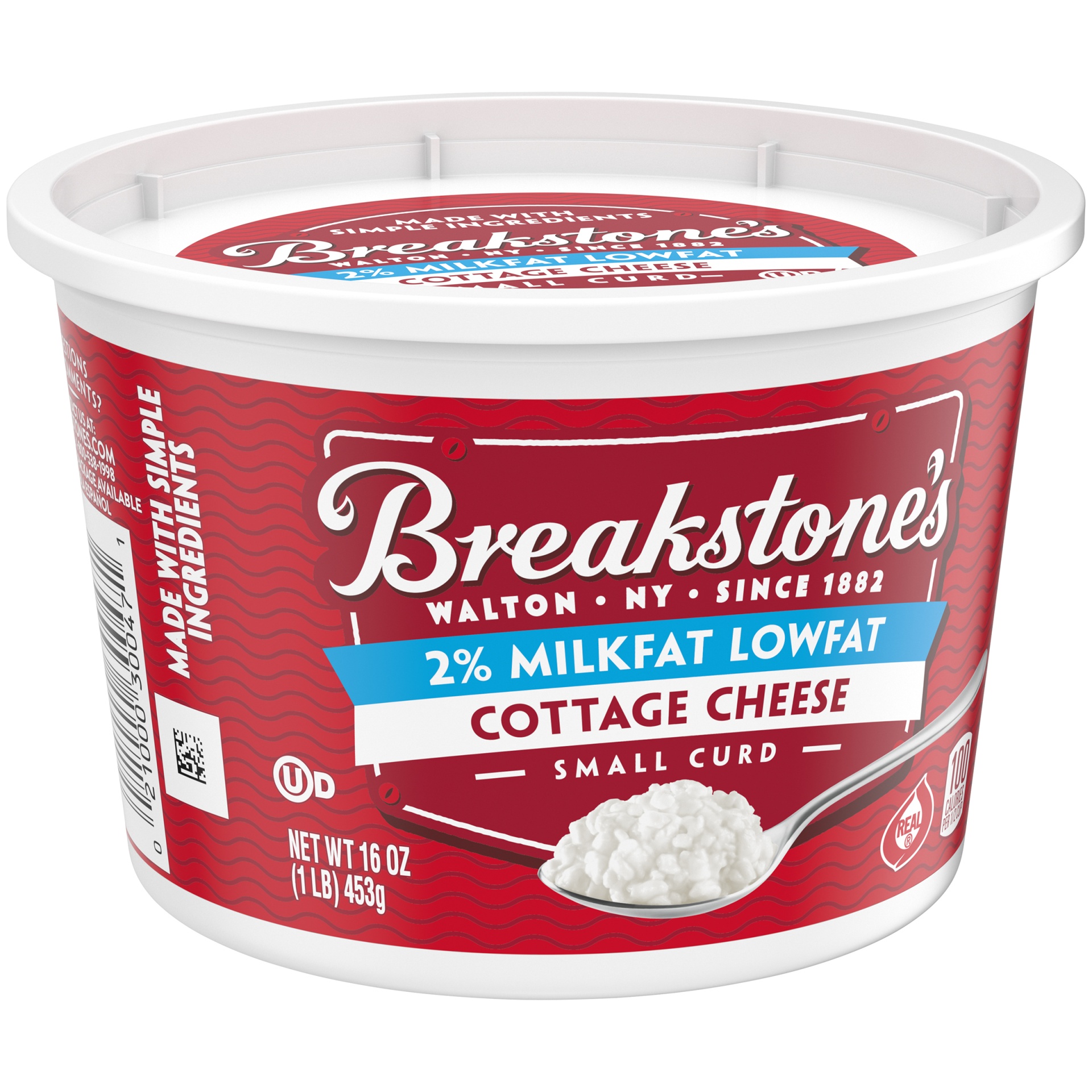 - Breakstone's Small Curd 2% Milkfat Lowfat Cottage Cheese is classic cottage cheese with less fat