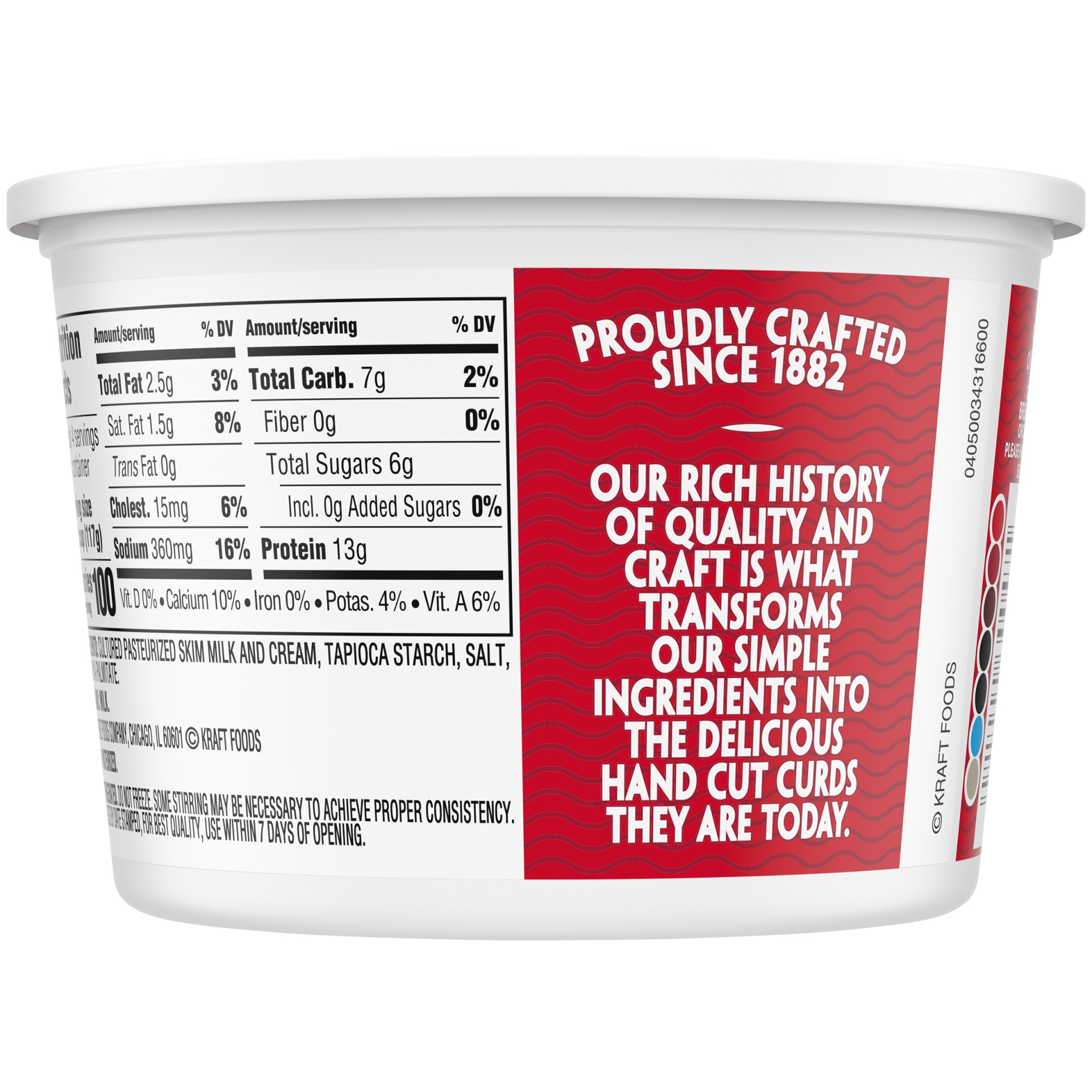 Breakstone's Small Curd 2% Milkfat Lowfat Cottage Cheese delivers the classic cottage cheese taste and texture you know and love with less fat. This small curd cottage cheese is made with cultured pas…