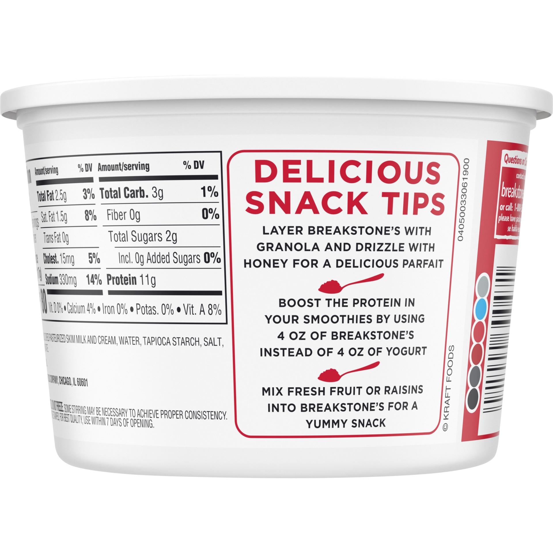 Breakstone''s Small Curd 2% Milkfat Lowfat Cottage Cheese delivers the classic cottage cheese taste and texture you know and love with less fat. This small curd cottage cheese is made with cultured pa…