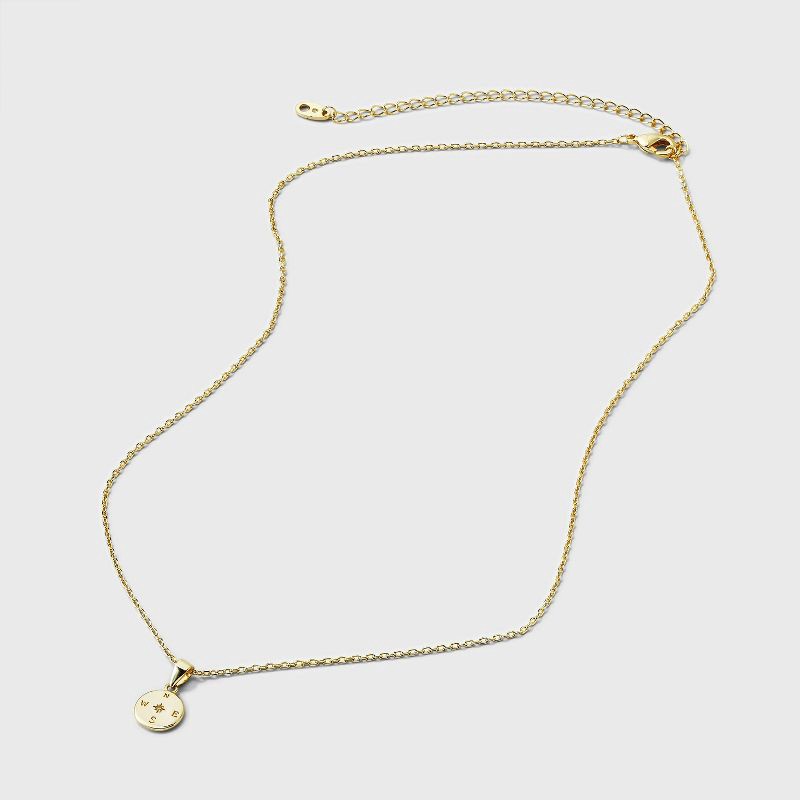14k Gold Dipped Lab-Grown Diamond Round Compass Pendant Necklace - Gold