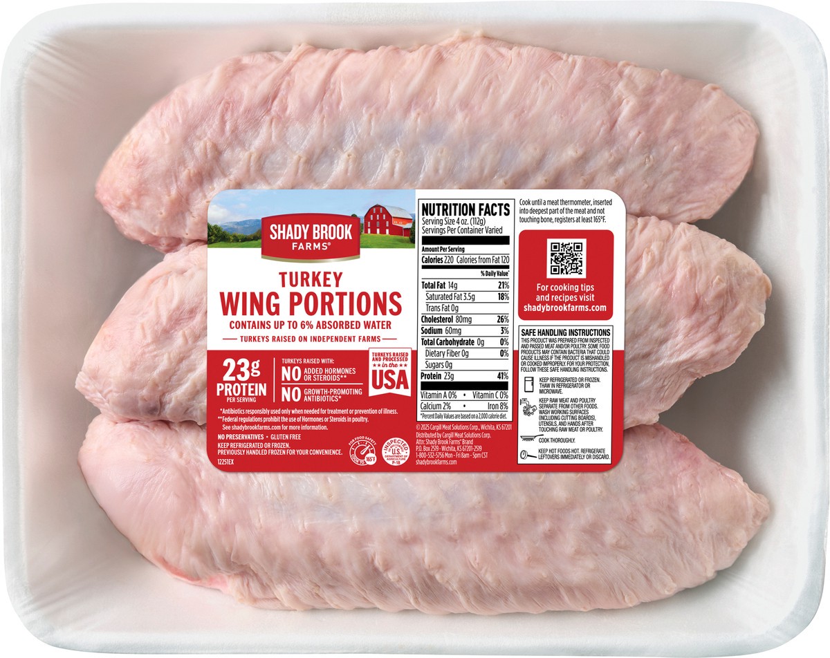 Shady Brook Farms Turkey Wing Portions, Bone-in, 3 Count, Tray, Fresh, 2 - 2.25 lbs