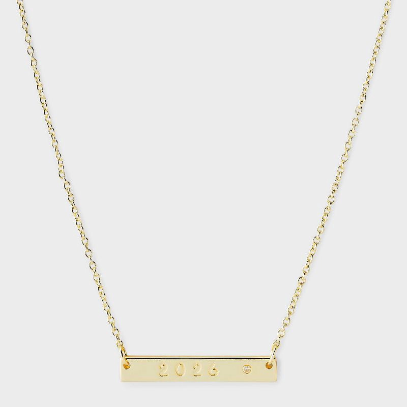 14k Gold Dipped Lab-Grown Diamond "2026" Bar Necklace - Gold