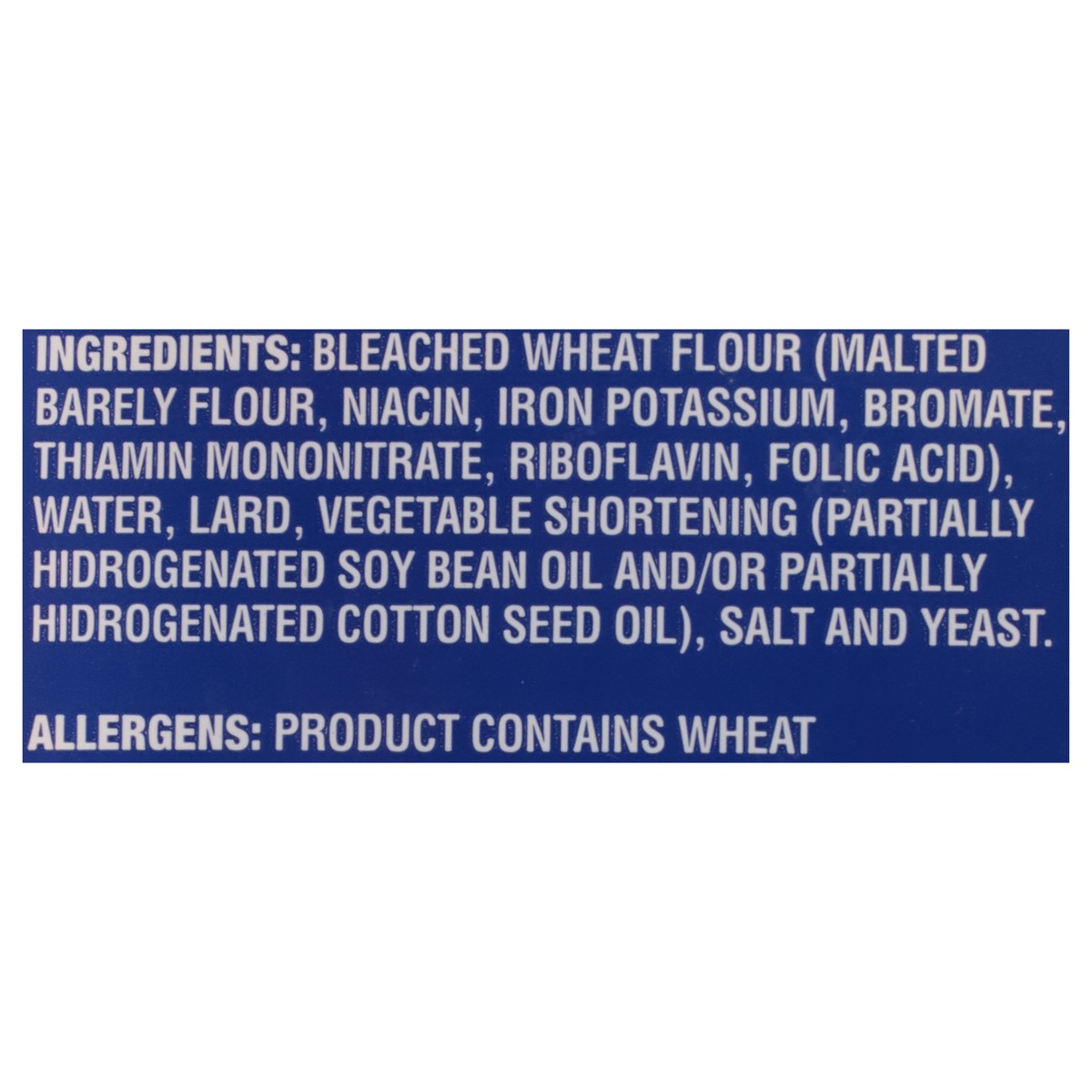 Bleached Wheat Flour (Malted Barley Flour, Niacin, Iron Potassium, Bromate, Thiamin Mononitrate, Riboflavin, Folic Acid), Water, Lard, Vegetable Shortening (Partially Hidrogenated Soy Bean Oil and/or …