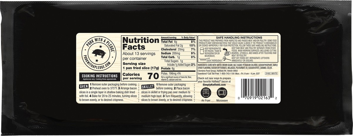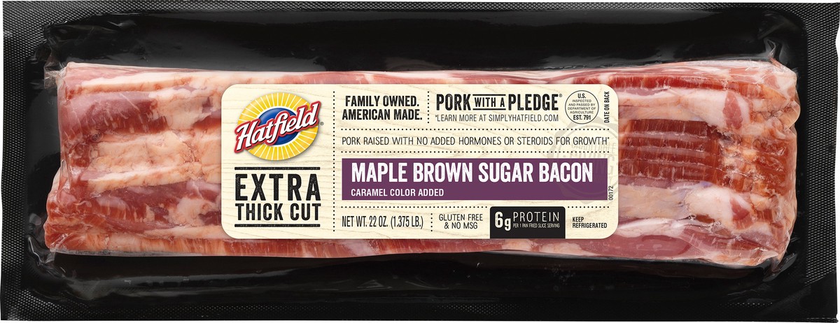 Pork with a pledge. Family owned. American made. Pork raised with no added hormones or steroids for growth (Learn more at simplyhatfield.com). Caramel color added. No MSG. Air fryer. Microwave.