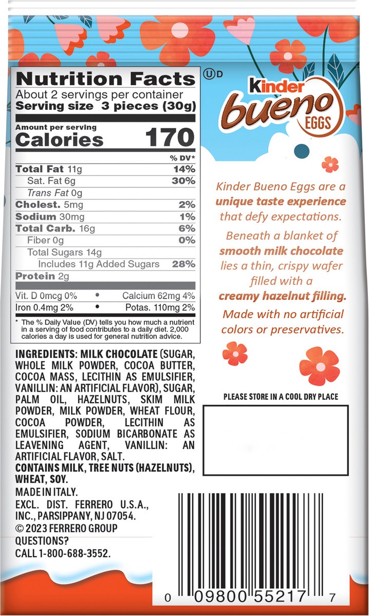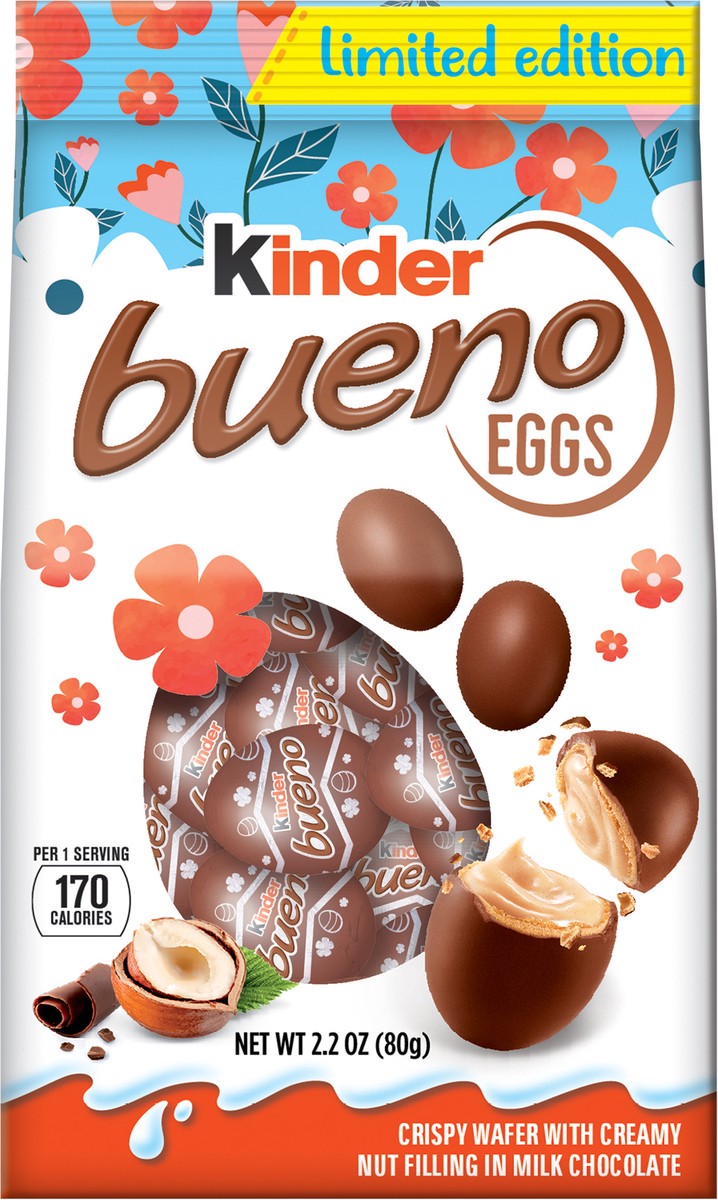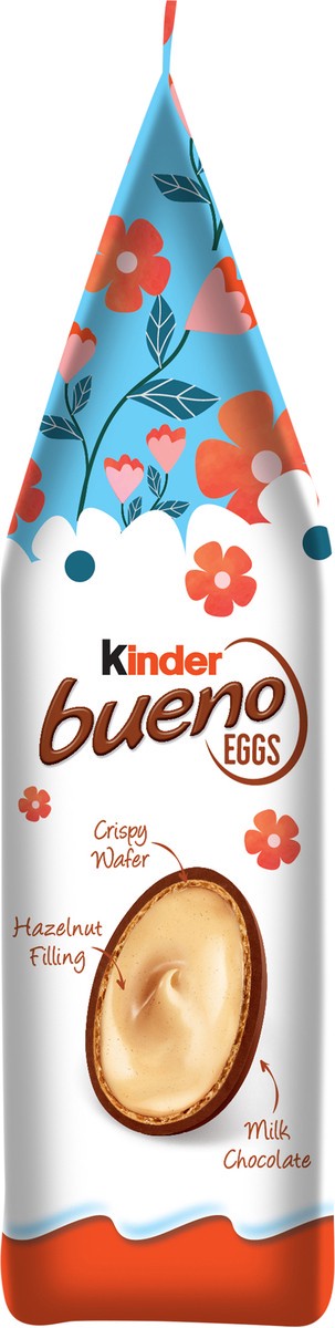 Kinder Bueno Eggs are a unique taste experience that defy expectations. Beneath a blanket of smooth milk chocolate lies a thin, crispy wafer filled with a creamy hazelnut filling. Crispy wafer. Hazeln…