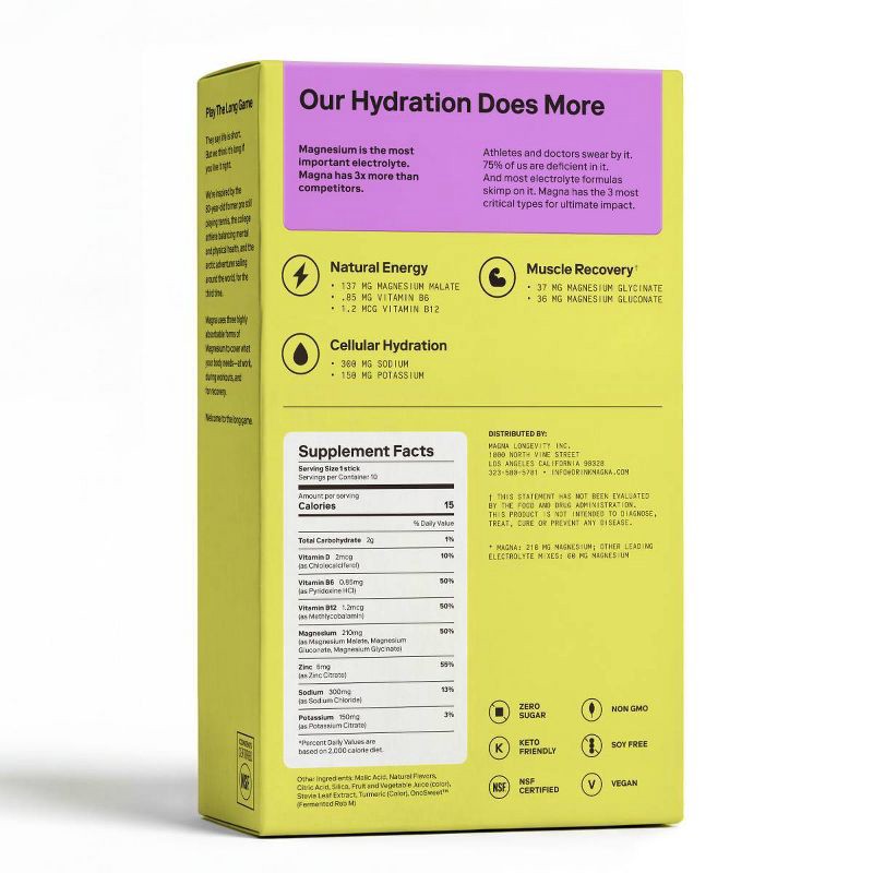 - MAGNESIUM HYDRATION DRINK MIX: Magna delivers clean, zero-sugar hydration powered by three highly bioavailable forms of magnesium—Magnesium Gluconate, Malate & Glycinate—combined with sodium and potassium electrolytes.