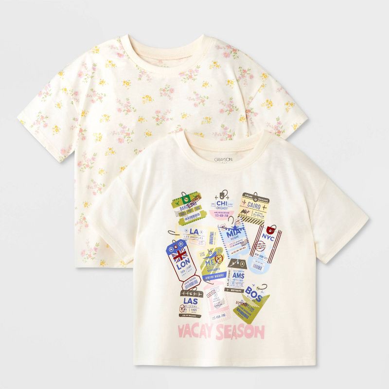 Grayson Mini Toddler Girls' 2pk Short Sleeve Vacay Season Oversized T-Shirt - White 4T