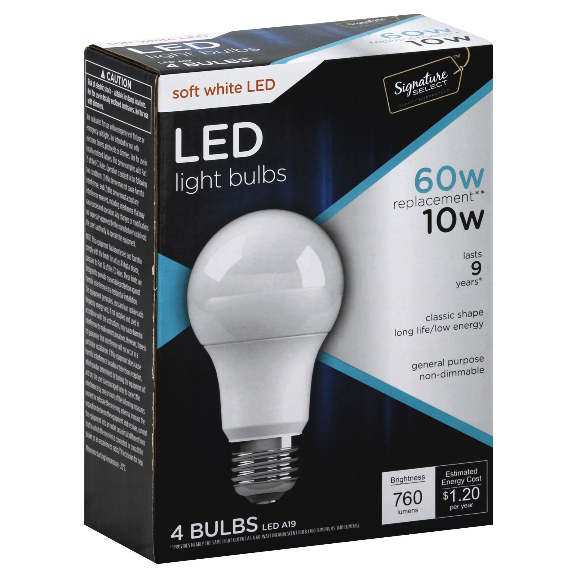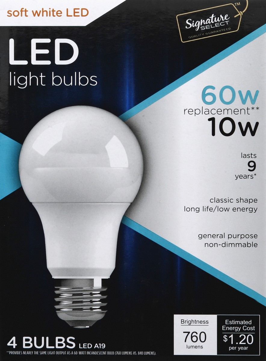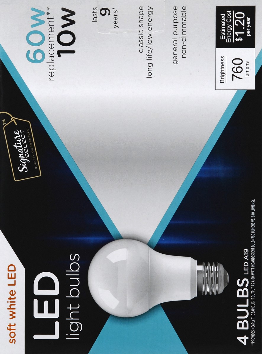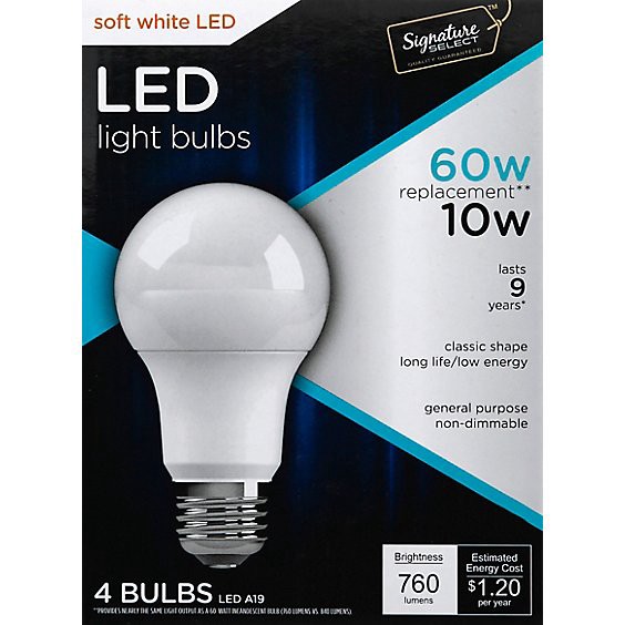 Signature Select Light Bulb Led Soft White 10w A19 760 Lumens - 4 Count
