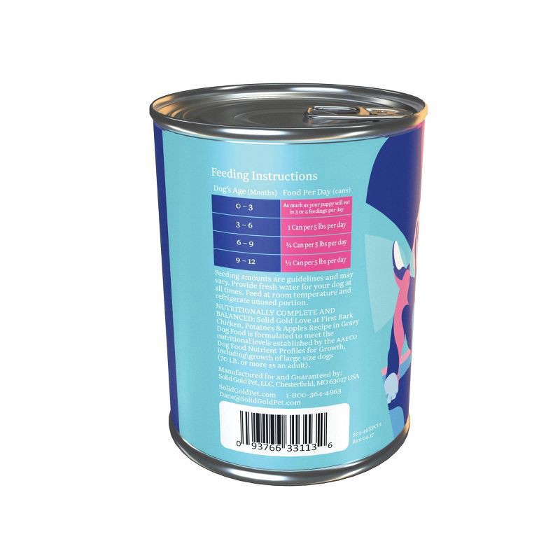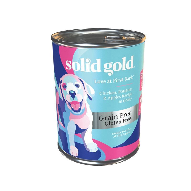 Give your growing puppy love at First bite with the Solid Gold love at First bark chicken, potatoes & Apples puppy recipe grain-free Canned dog food. This highly-digestible formula is made with chunks…