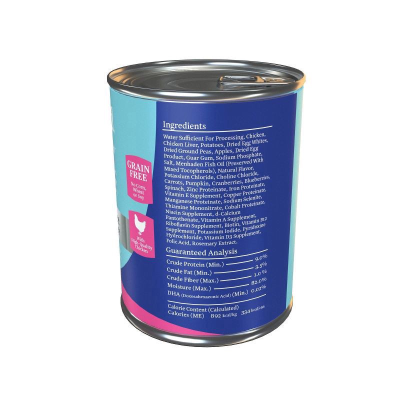 WATER SUFFICIENT FOR PROCESSING, CHICKEN, CHICKEN LIVER, POTATOES, DRIED EGG WHITES, DRIED GROUND PEAS, APPLES, DRIED EGG PRODUCT, GUAR GUM, SODIUM PHOSPHATE, SALT, MENHADEN FISH OIL (PRESERVED WITH M…