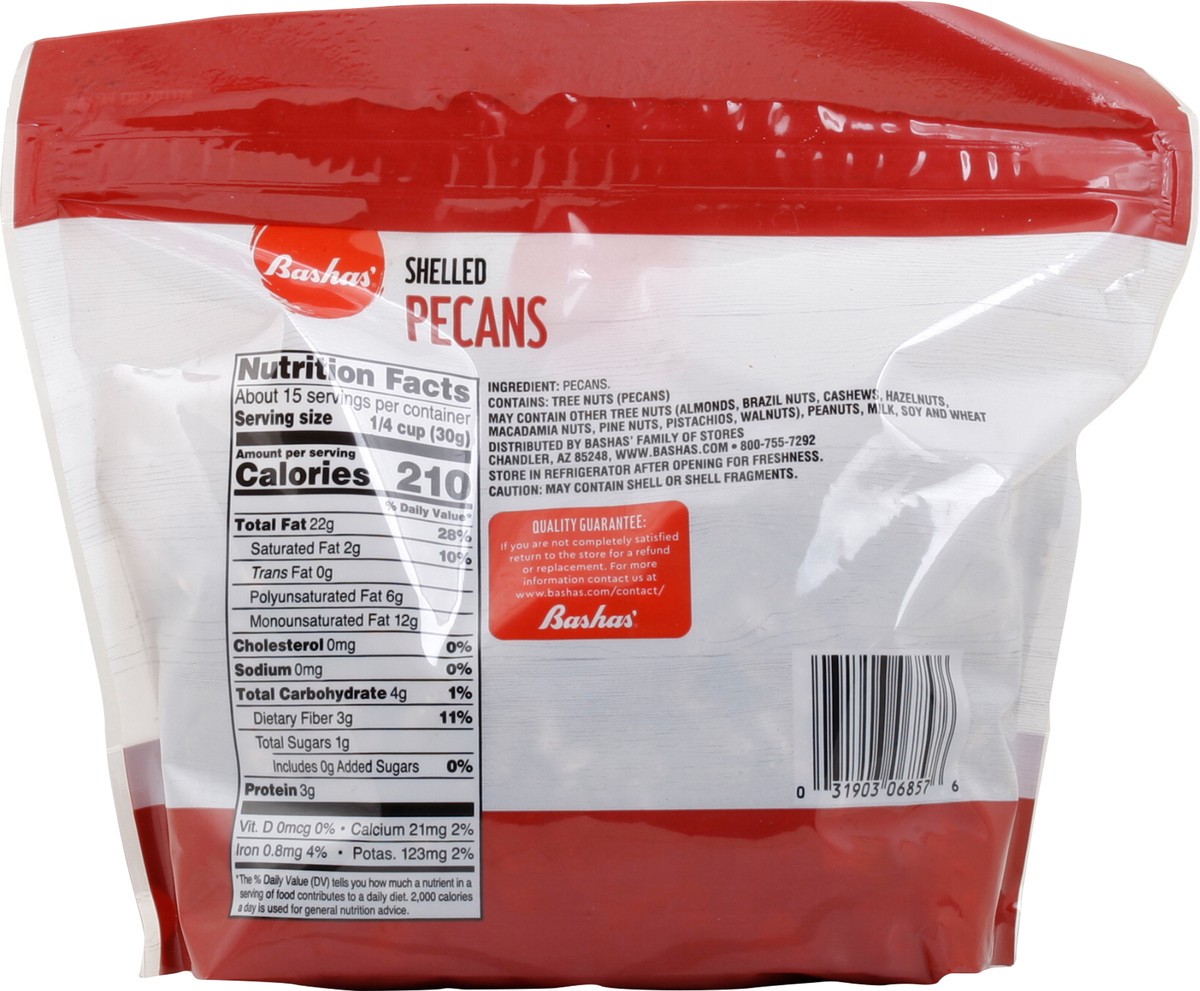Contains: tree nuts (pecans). may contain other tree nuts (almonds, brazil nuts, cashews, hazelnuts, macadamia nuts, pine nuts, pistachios, walnuts), peanuts, milk, soy and wheat.