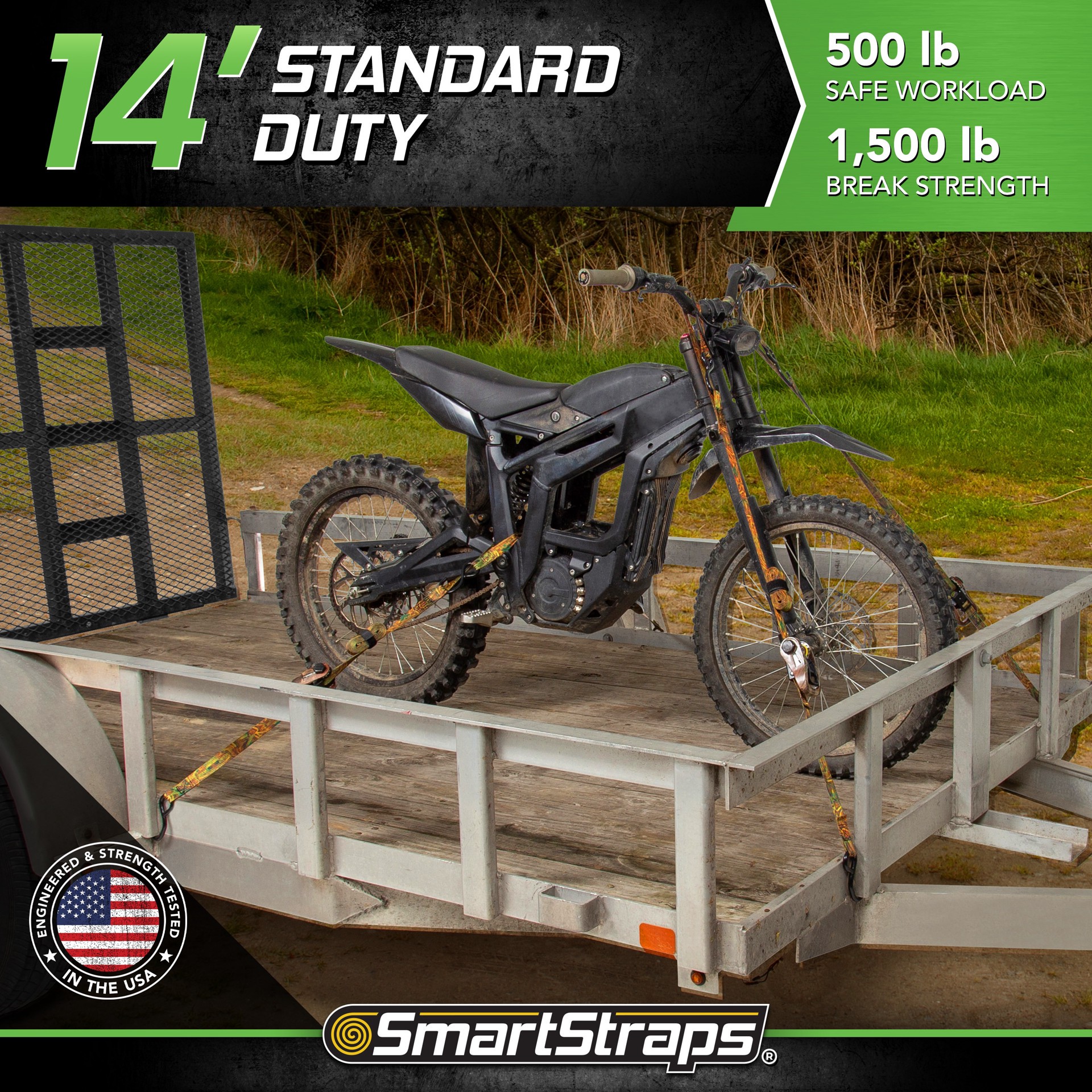 Great for securing lighter loads like dirt bikes, ATVs, and lawn mowers; or moving furniture and appliances. Break strength of 1,500 lb and safe working load of 500 lb.. Durable construction for optim…