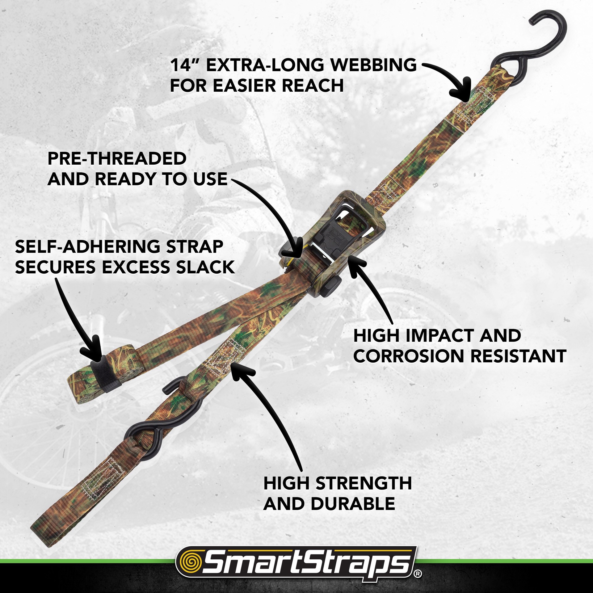 SmartStraps 1-in x 14-ft Ratchet Tie Down with S-hook 1500-lb Break Strength (4-Pack)