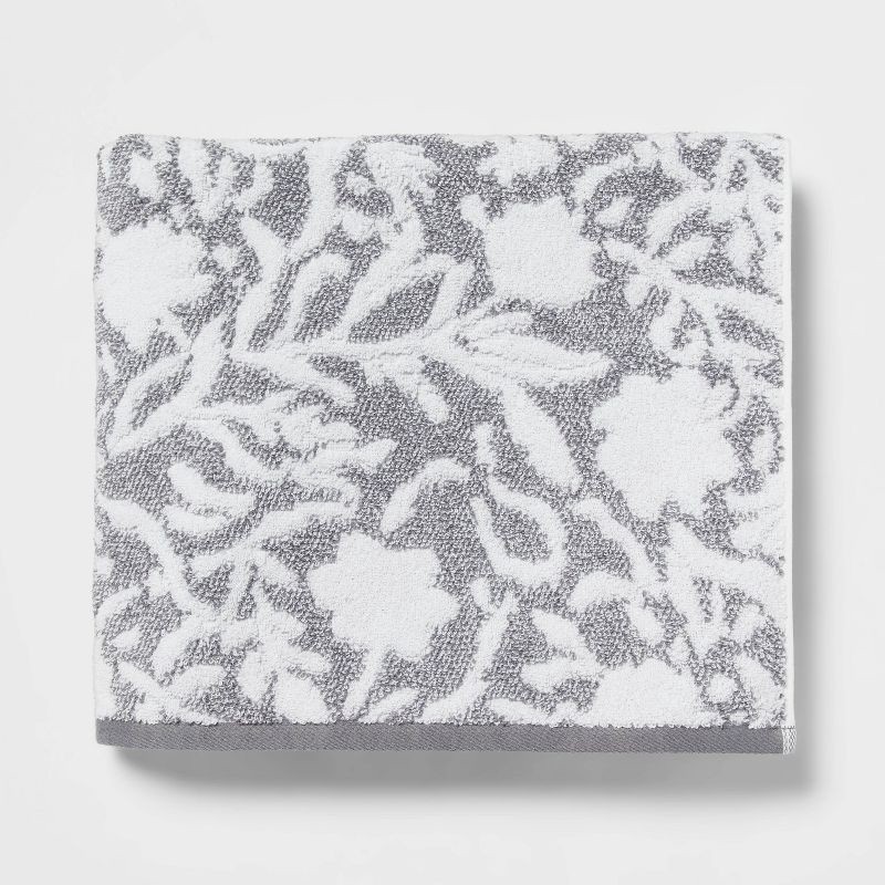 Performance Plus Bath Towel Gray Floral - Threshold™: Heavyweight Cotton, Jacquard Terry, OEKO-TEX Certified