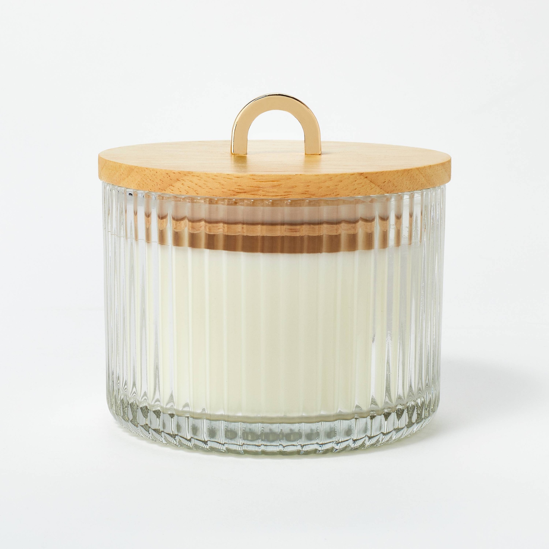 Indulge in a new and unique kind of relaxation with this Glass Clove and Black Currant Candle from Threshold designed with Studio McGee. Featuring a ribbed glass container with a wooden lid, this cand…