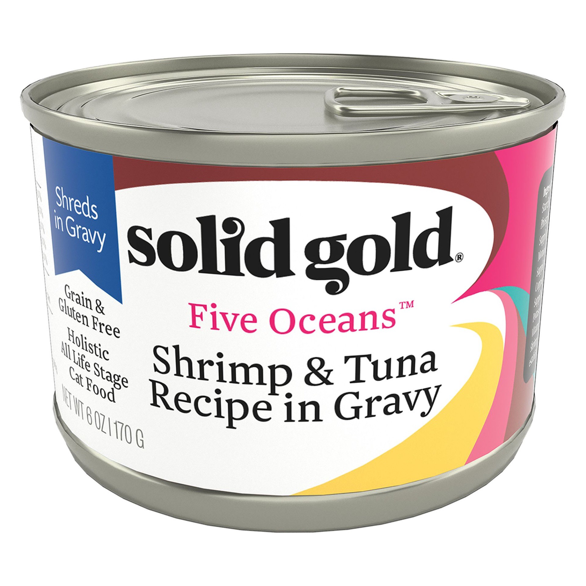 slide 1 of 1, Solid Gold Five Oceans Shrimp & Tuna Grain Free Canned Cat Food, 6 oz