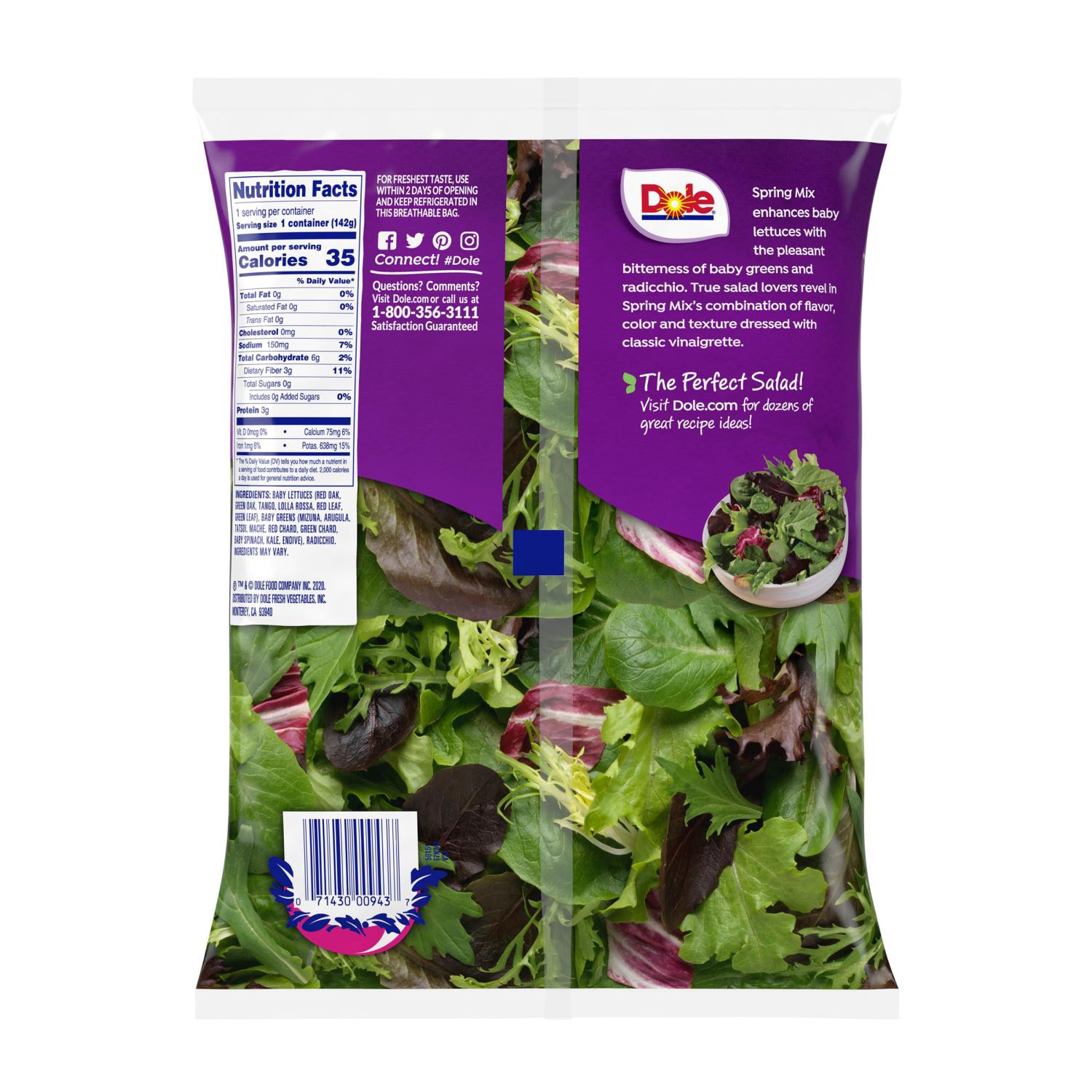 Dole Salad Spring Mix With Baby Romaine And Oak Leaf Lettuce, 5 Oz