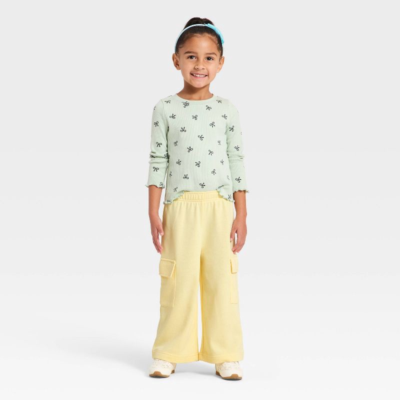 Grayson Mini Toddler Girls' French Terry Wide Leg Pants - Yellow 12M