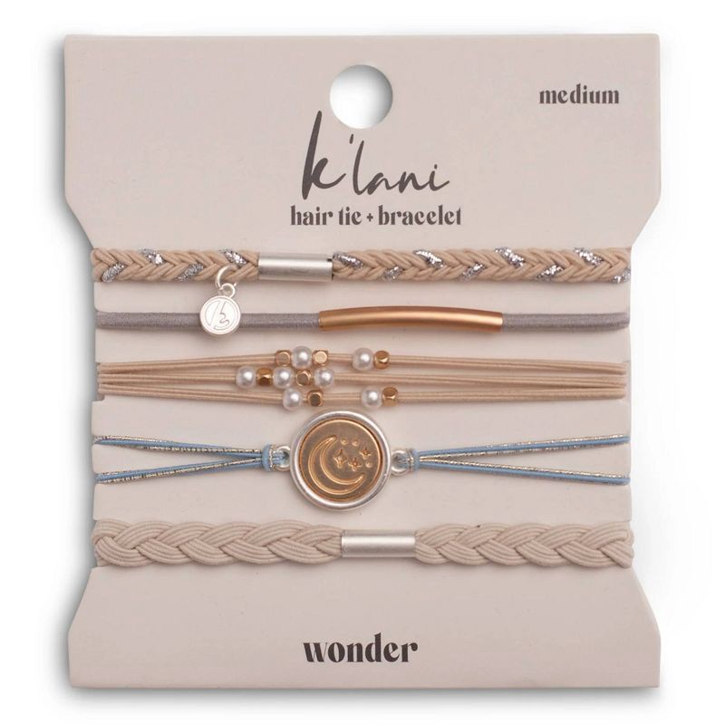 Our WONDER set includes five Hair Tie Bracelets in gorgeous light neutrals with hints of pearl, gold, and silver that pair beautifully with any style. Comfortable and stylish on your wrist or in your …