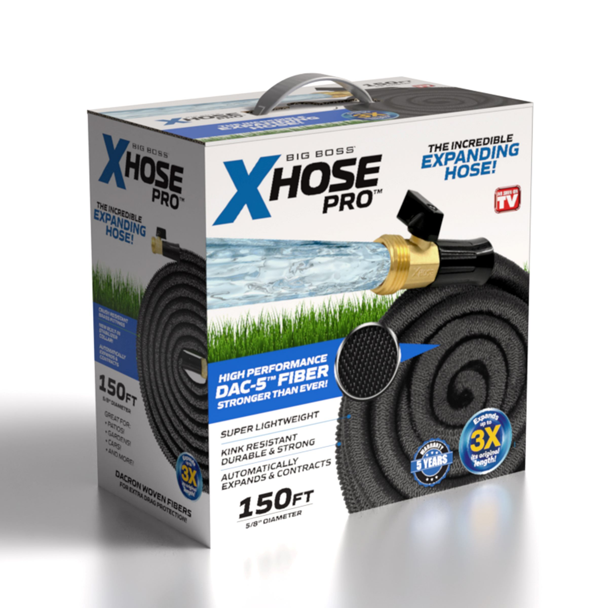 The Big Boss XHose Pro is an innovative expanding garden hose designed for convenience and durability. Made with high-performance DAC-5 fiber, this hose is stronger than ever and resistant to kinks. I…