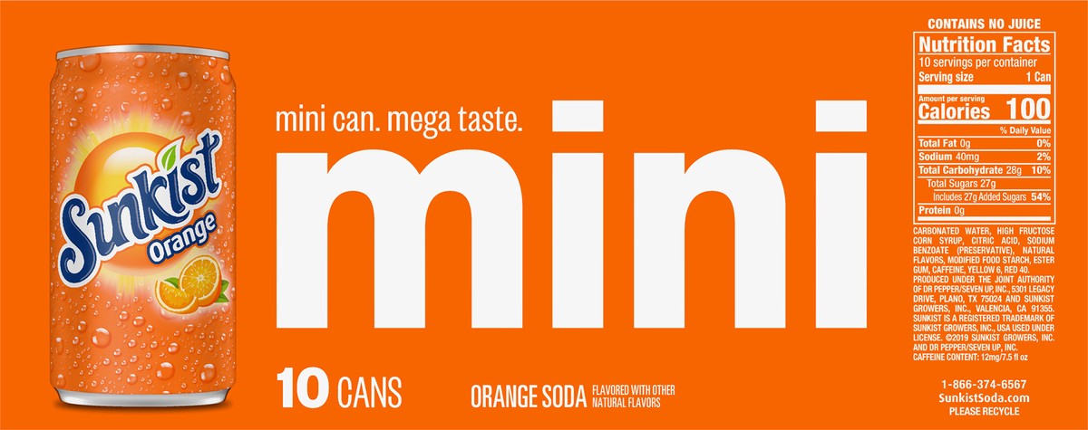 Sunkist Orange Soda Mini Cans - 10-7.5 Fl. Oz.