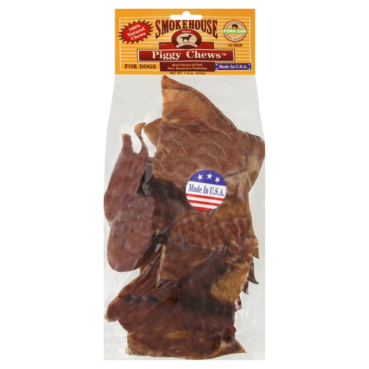 100% natural chews. Real flavors of pork slow roasted to perfection. Pork ear - roasted to perfection. Smokehouse Piggy Chews are natural hand cuts that preserve the flavors of the finest quality porkā¦