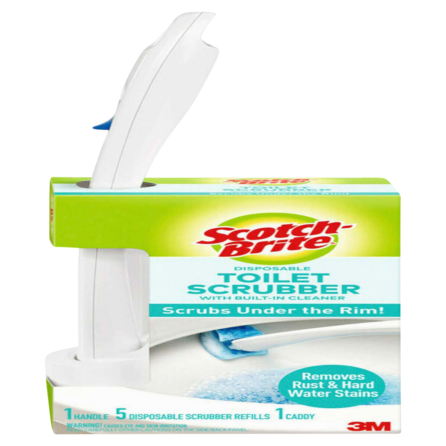 Toilet scrubber with built-in cleaner. Scrubs under the rim! Removes rust & hard water stains. Starter Kit Includes: 1 toilet scrubber handle - long, study, ergonomic handle designed for a no-touch cl…