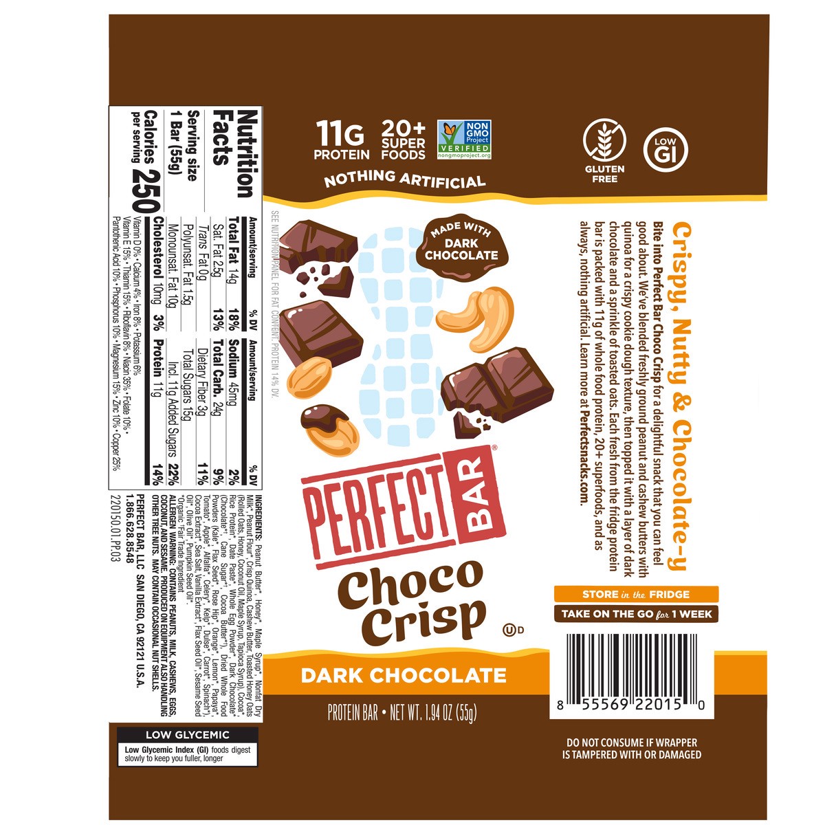 If you''re looking for a delicious, nutritious snack with that extra something special, try a Perfect Bar Choco Crisp Dark Chocolate Protein Bar, a nut butter bar crafted to delight your taste buds an…