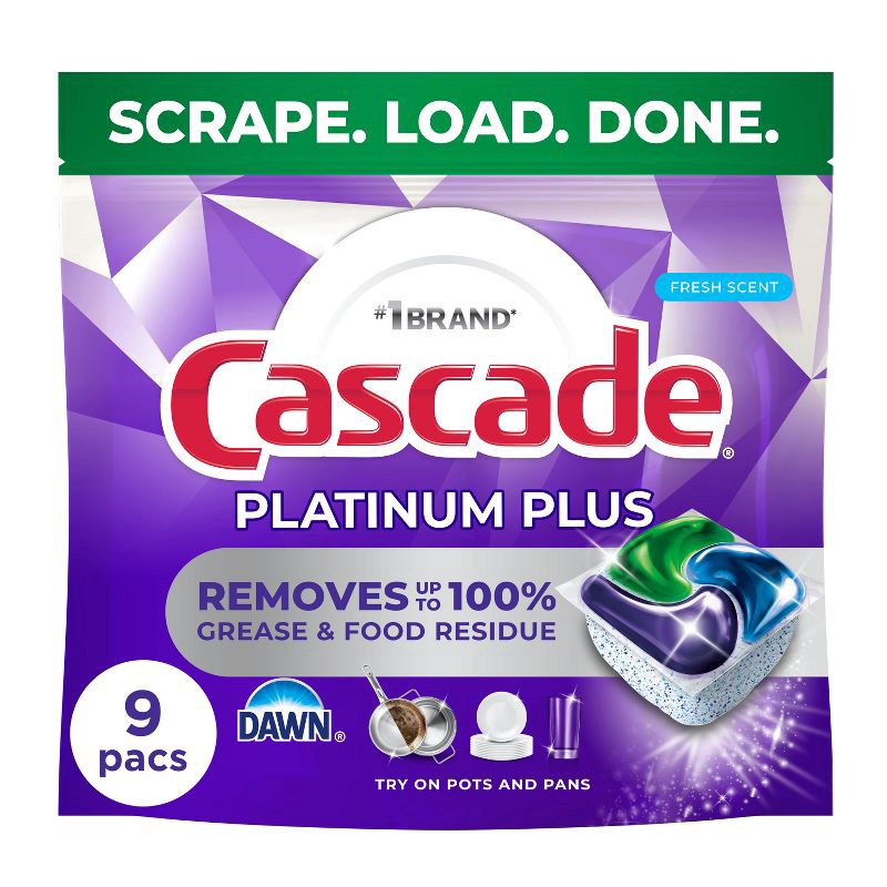 Cascade Platinum Plus Pods Dishwasher Detergent - Fresh - 9ct: Multi-Surface Cleaner Removes Fingerprints & Grease