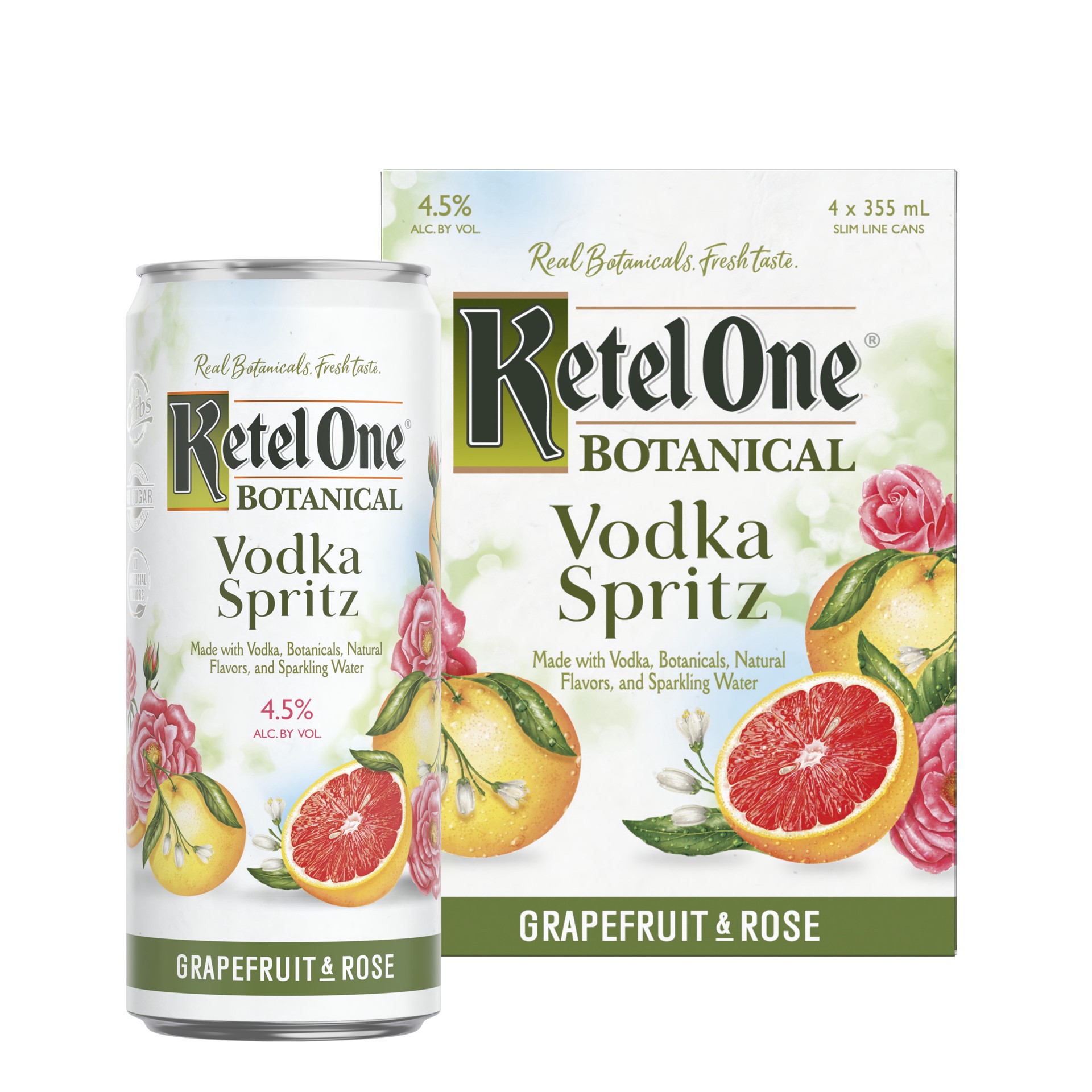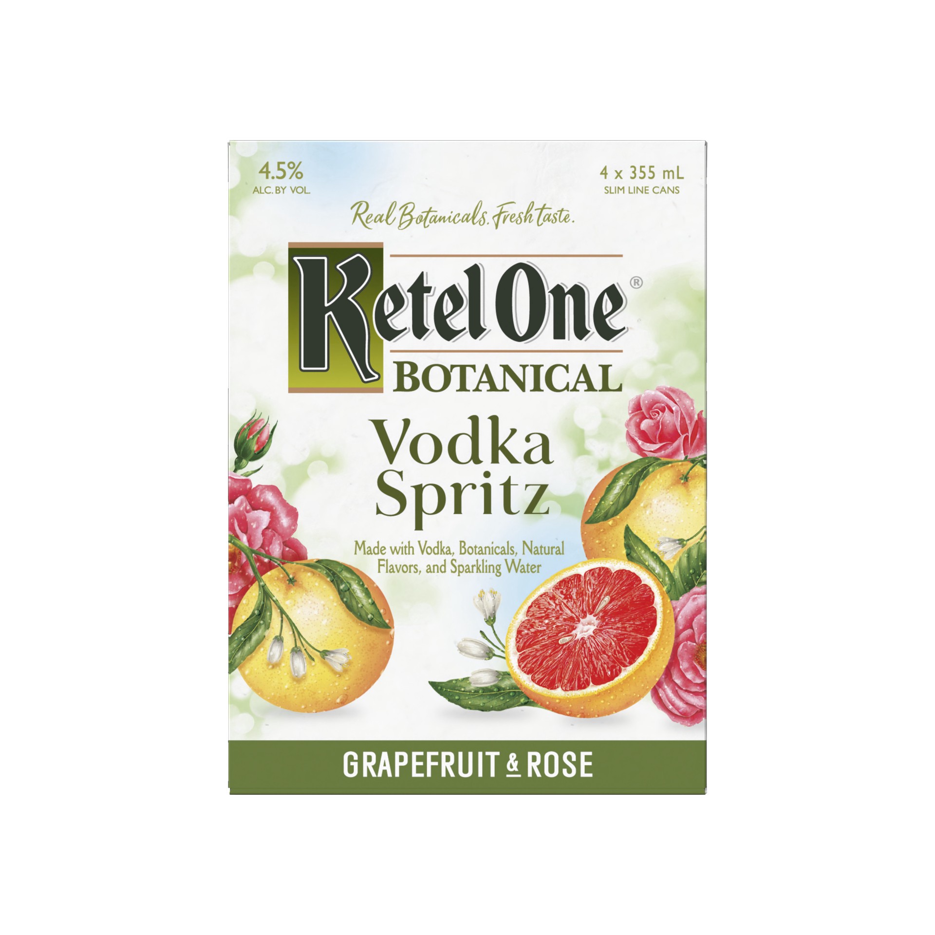 - Includes four 12 fl oz cans of Ketel One Botanical Vodka Spritz Grapefruit & Rose