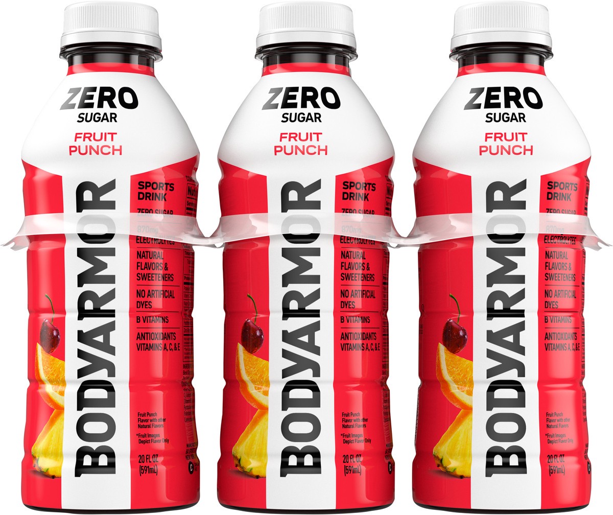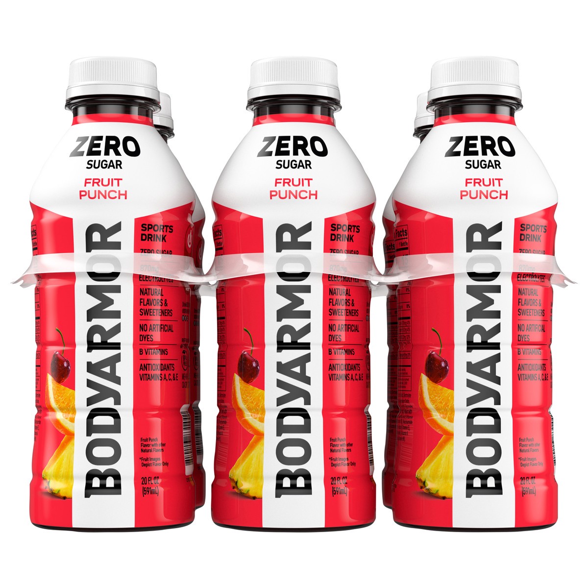 - 20 fl oz bottles of BODYARMOR Zero Sugar Fruit Punch electrolyte drinks to refresh your relentless drive all day