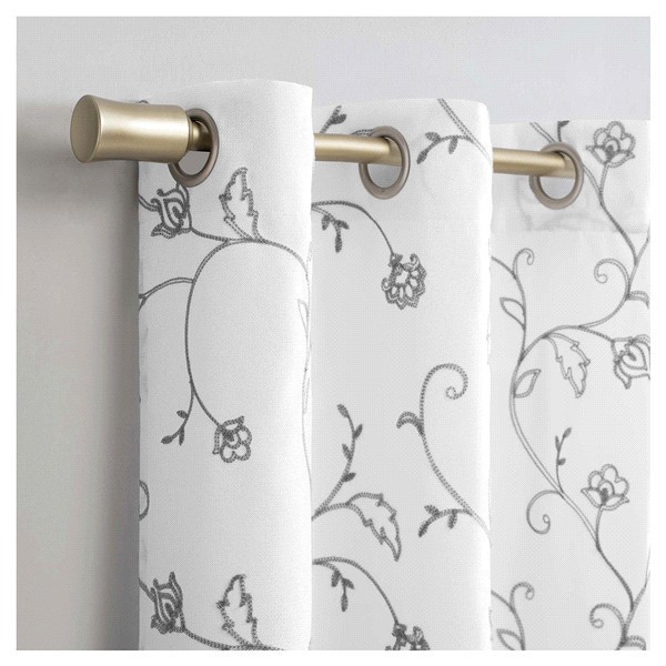 Breah Floral Embroidery Grommet Curtain Panel features a delicate floral embroidery design and brings a casual textured style to your windows with a contemporary feel.
