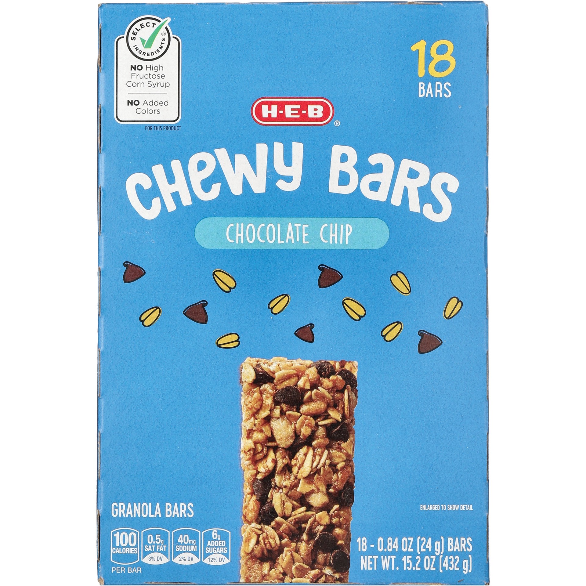 If you're a big fan of soft and chewy granola bars, try these chocolate chip ones from H-E-B. Made with whole grain rolled oats, rice, wheat and chocolate chips, they're just 100 calories each. Tuck '…