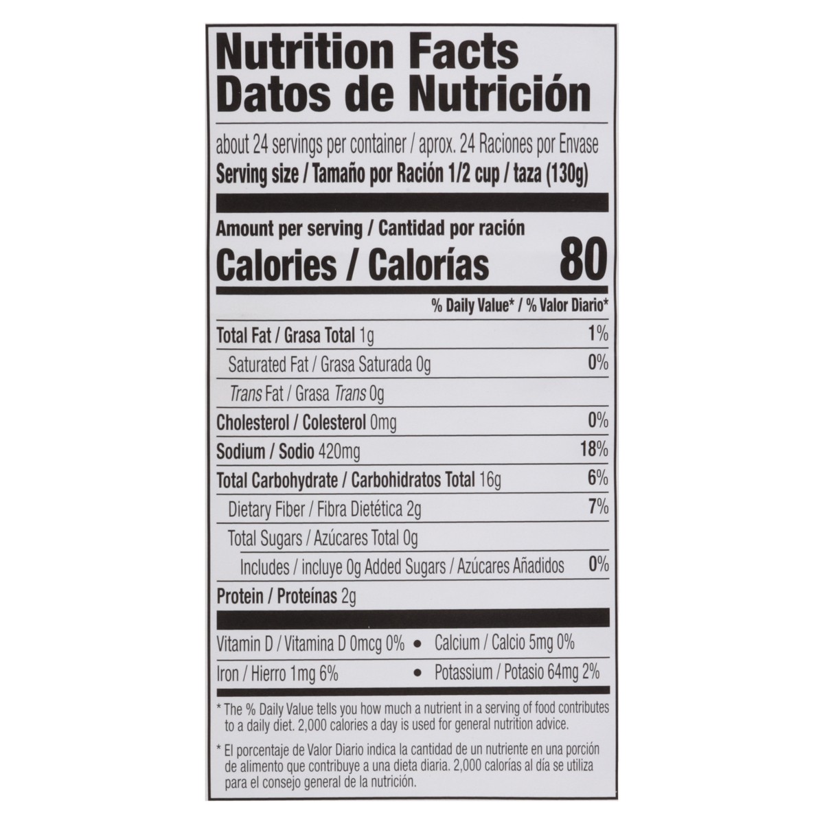 White Hominy Prepared with Water, Salt, Sodium Bisulfite Added to Promote Color.