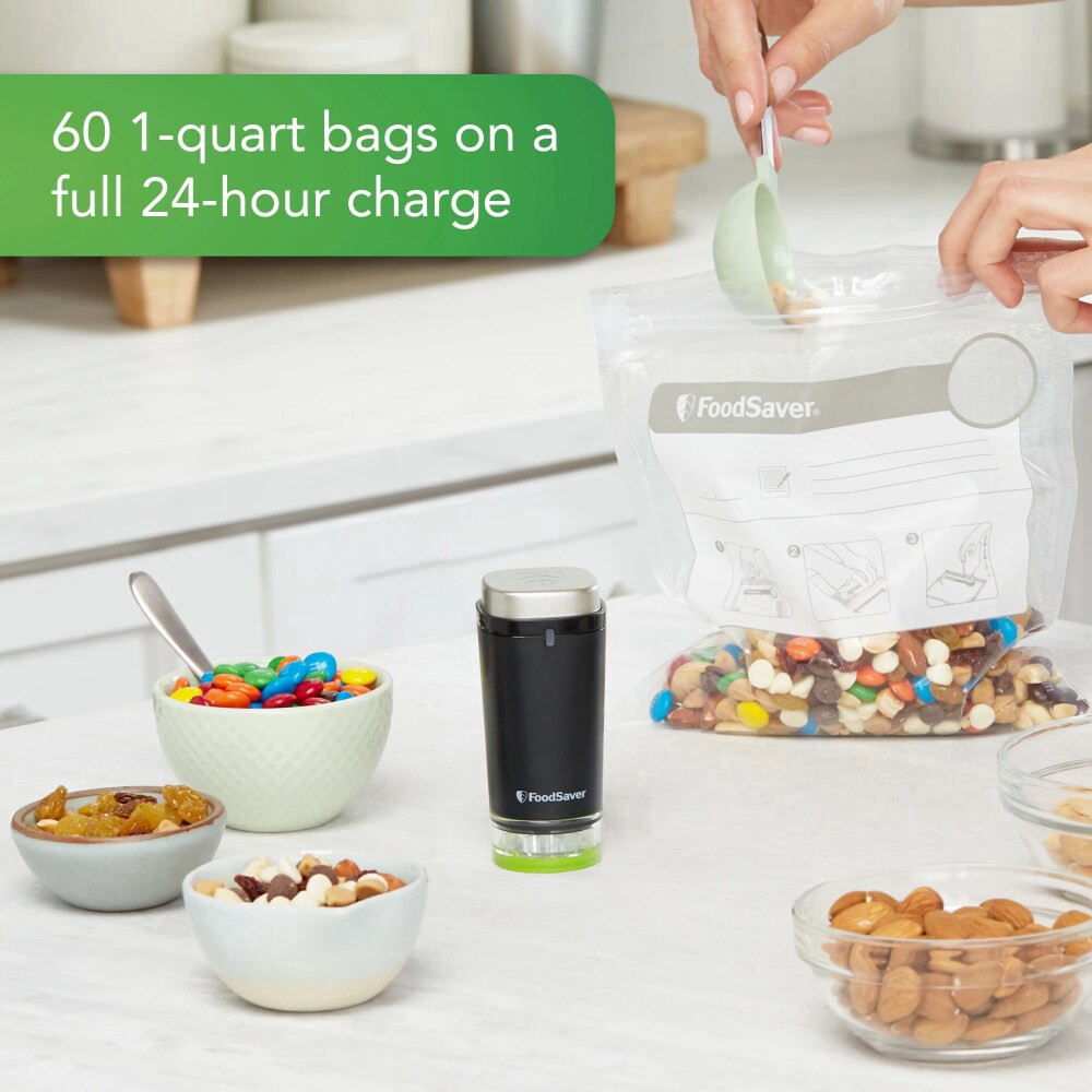 The FoodSaver Handheld Vacuum Sealer lets you enjoy all the benefits of vacuum sealing while taking up minimal counterspace. Compatible with all FoodSaver vacuum zipper bags and FoodSaver Fresh vacuum…