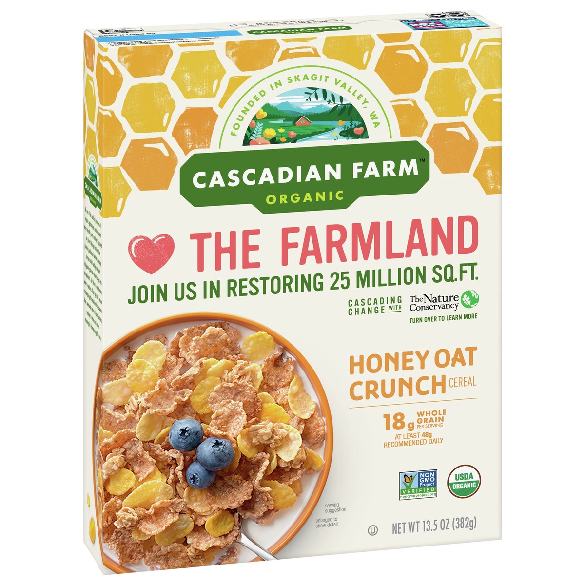 18 g whole grain per serving. At least 48 g recommended daily. Organic. USDA Organic. Certified Organic by Oregon Tilth. Non GMO Project verified. nongmoproject.org. Founded in Skagit Valley, WA. As o…