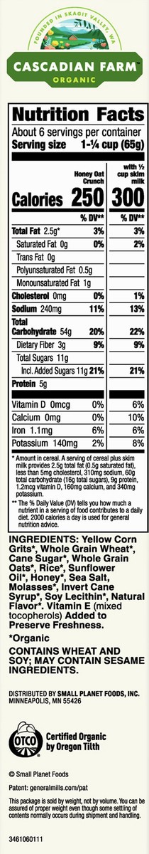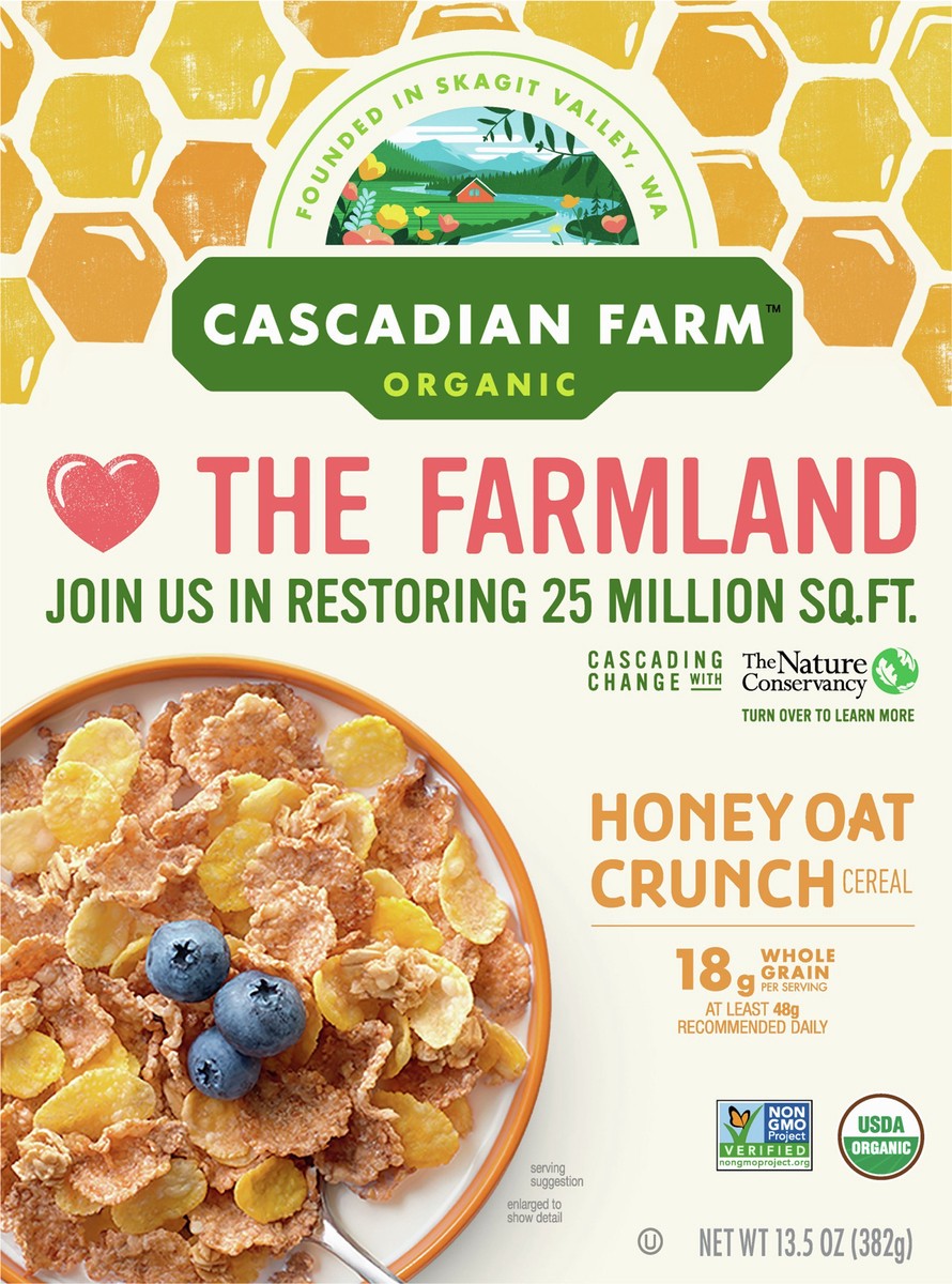 Cascadian Farm Honey Oat Crunch Organic Cereal, Made with Whole Grain, 13.5 oz