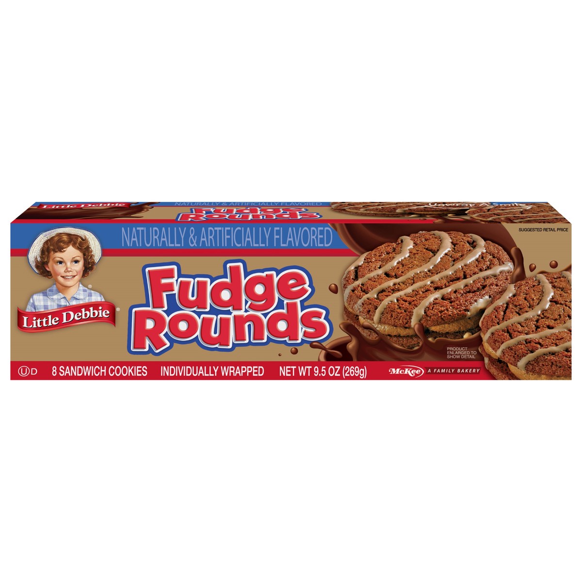 Add a sweet surprise to snack time with Little Debbie® Fudge Rounds! Each sandwich cookie has a delicious chocolatey creme between two chocolate cookies and then topped with an even more yummy chocola…