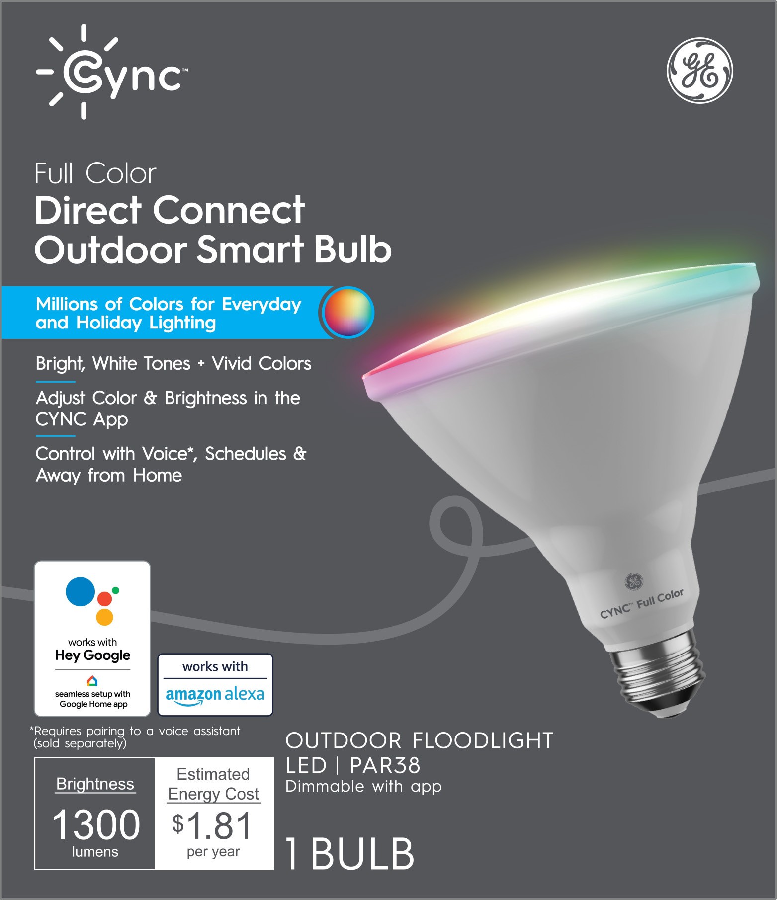 GE Cync Outdoor 90 -Watt EQ PAR38 Full spectrum Medium screw base E26 Dimmable Smart LED Spot Flood Light Bulb