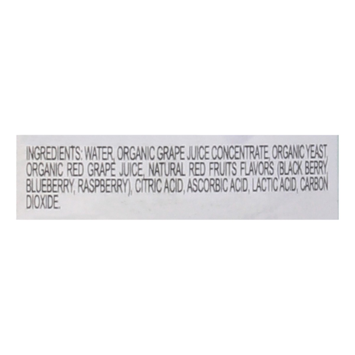 Water, Organic Grape Juice Concentrate, Organic Yeast, Organic Red Grape Juice, Natural Red Fruit Flavors (Black Berry, Blueberry, Raspberry), Citric Acid, Ascorbic Acid, Lactic Acid, Carbon Dioxide.