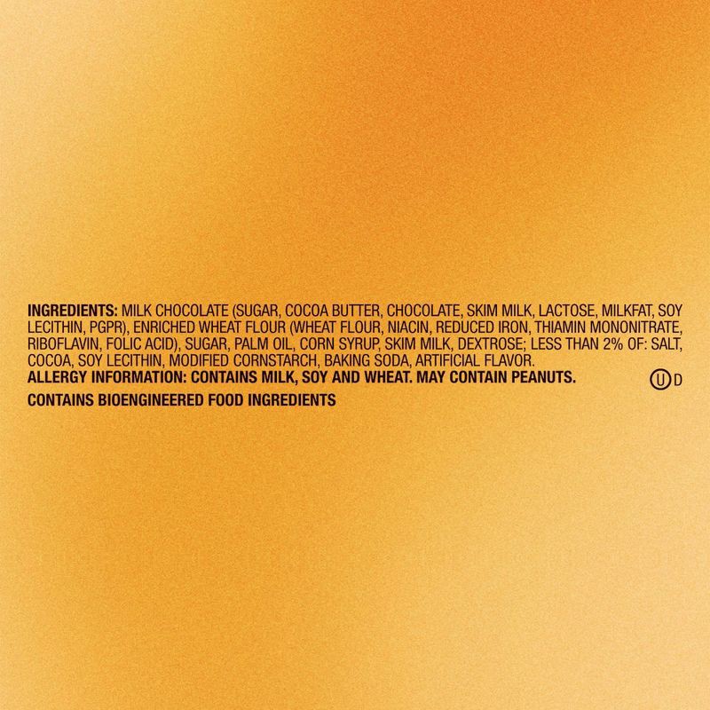 Milk Chocolate (Sugar, Cocoa Butter, Chocolate, Skim Milk, Lactose, Milkfat, Soy Lecithin, PGPR), Enriched Wheat Flour (Wheat Flour, Niacin, Reduced Iron Thamin Mononitrate, Riboflavin, Folic Acid, Su…