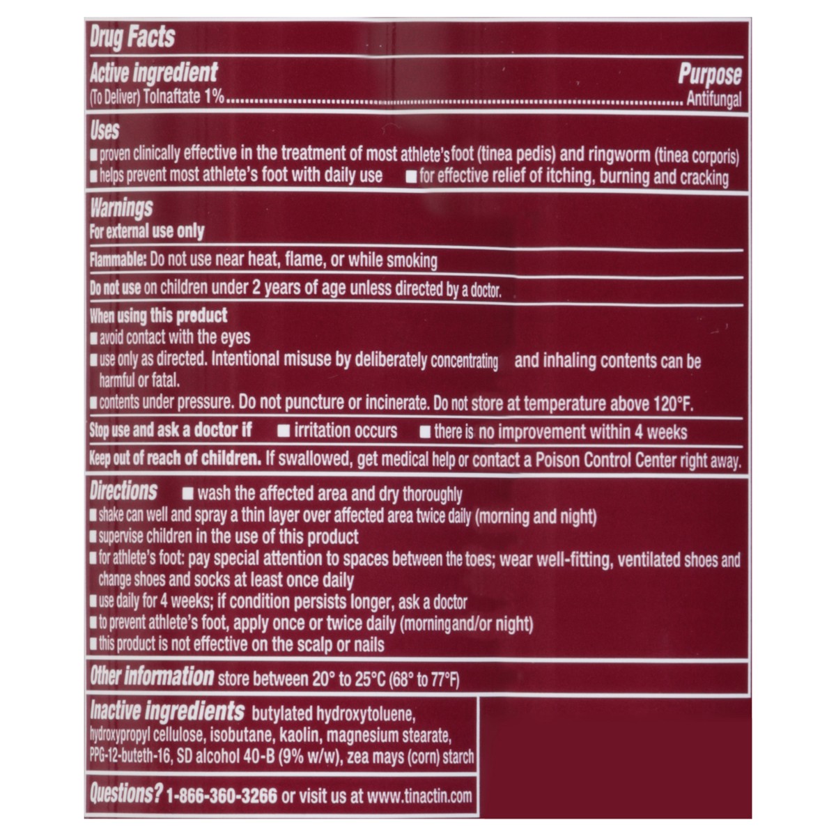 Active Ingredients: (To Deliver) Tolnaftate (1 %), Antifungal. Inactive Ingredients: Butylated Hydroxytoluene, Hydroxypropyl Cellulose, Isobutane, Kaolin, Magnesium Stearate, PPG-12-Buteth-16, SD alco…