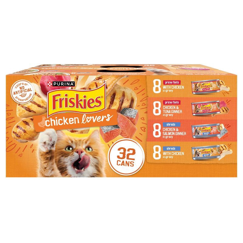 - Purina Friskies canned cat food variety pack featuring poultry and fish flavors cats love. Array of textures to please her palate