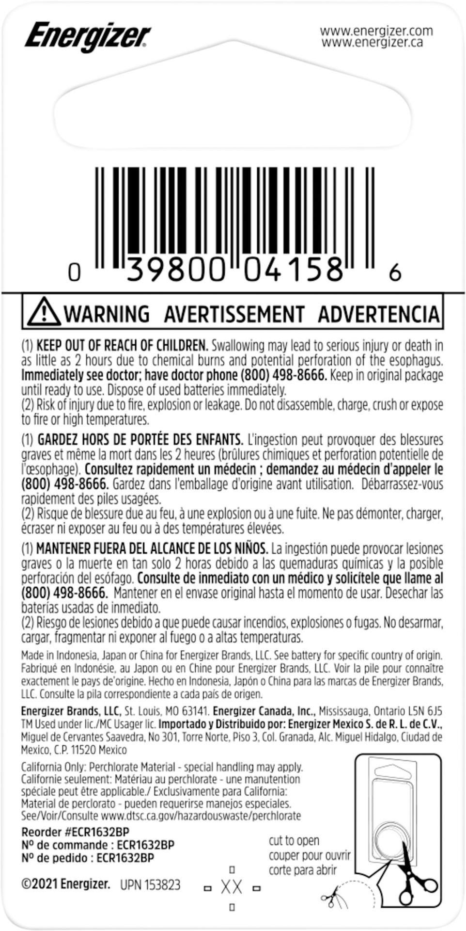 Don''t let their small size fool you: This Energizer 1632 Lithium Coin 3-Volt Battery delivers big time on long-lasting, dependable power for your coin-battery-operated items. From heart rate or gluco…