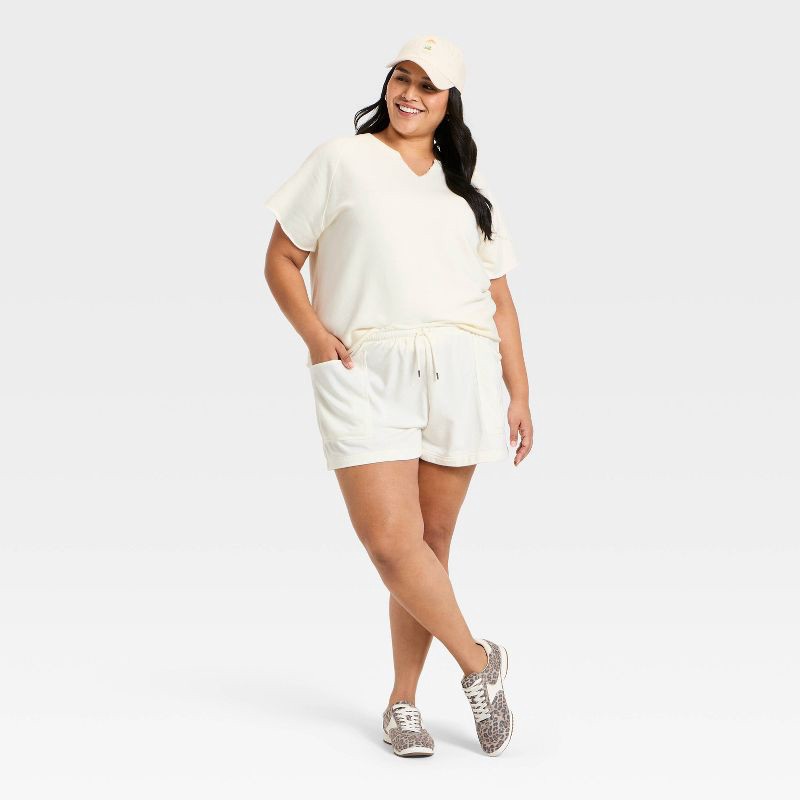 Women's Short Sleeve Leisure Split Neck T-Shirt - Universal Thread™ Cream XXL