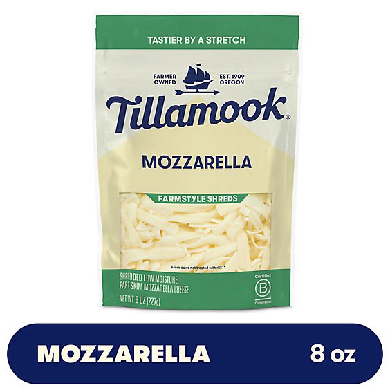Take home a melty cheese with Tillamook Farmstyle Mozzarella Shredded Cheese that is cut thick from the block. Featuring a low moisture, part-skim mozzarella cheese with a mild and buttery flavor, thi…