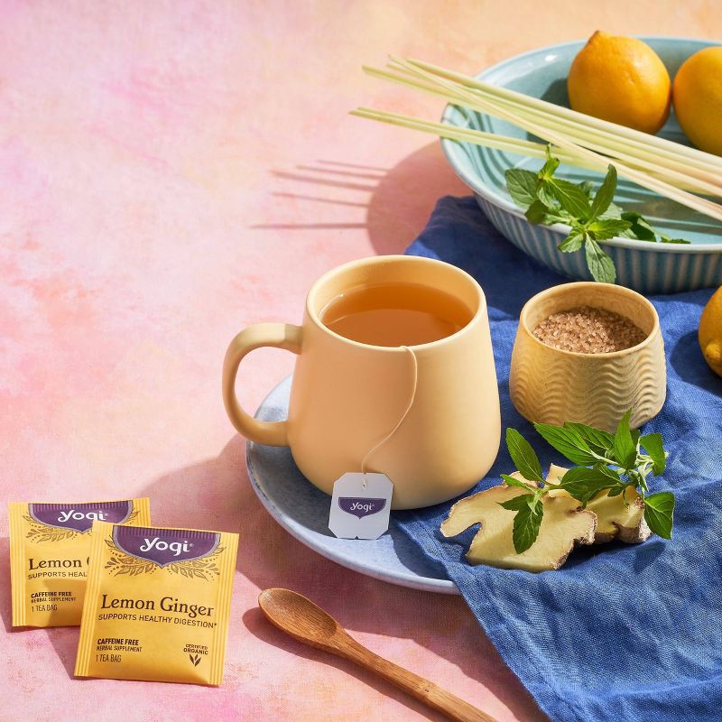 - FLAVOR: Yogi Lemon Ginger tea combines lively Ginger, tart Lemon Peel, and Peppermint Leaf for a perfectly spiced and citrus-y blend.
