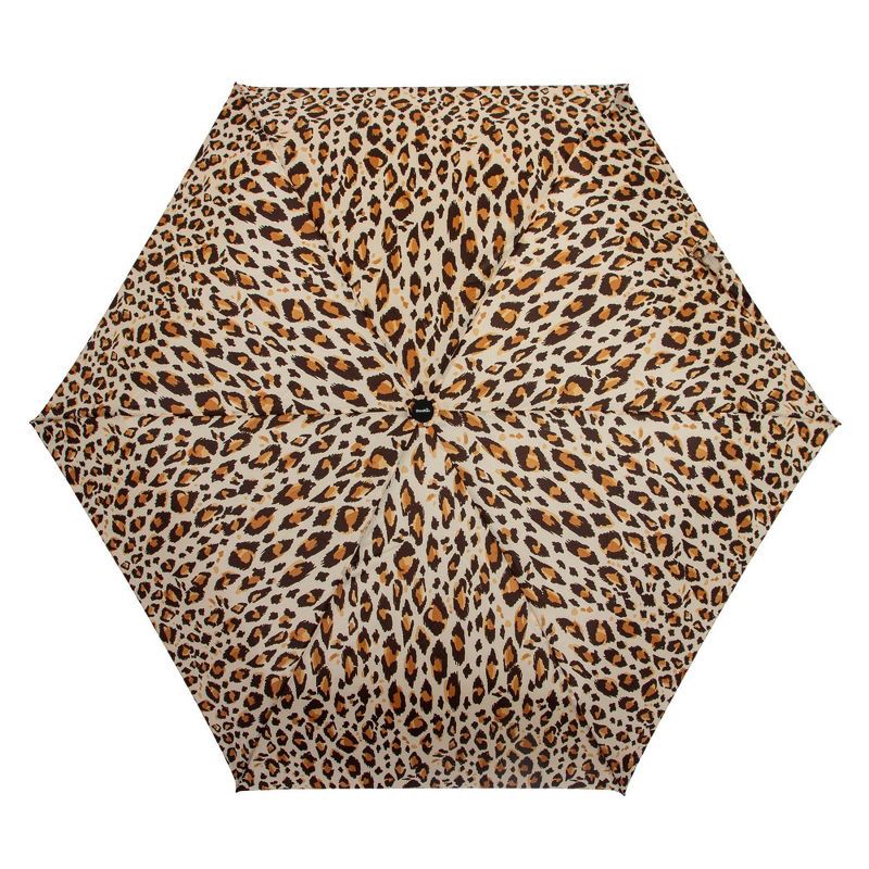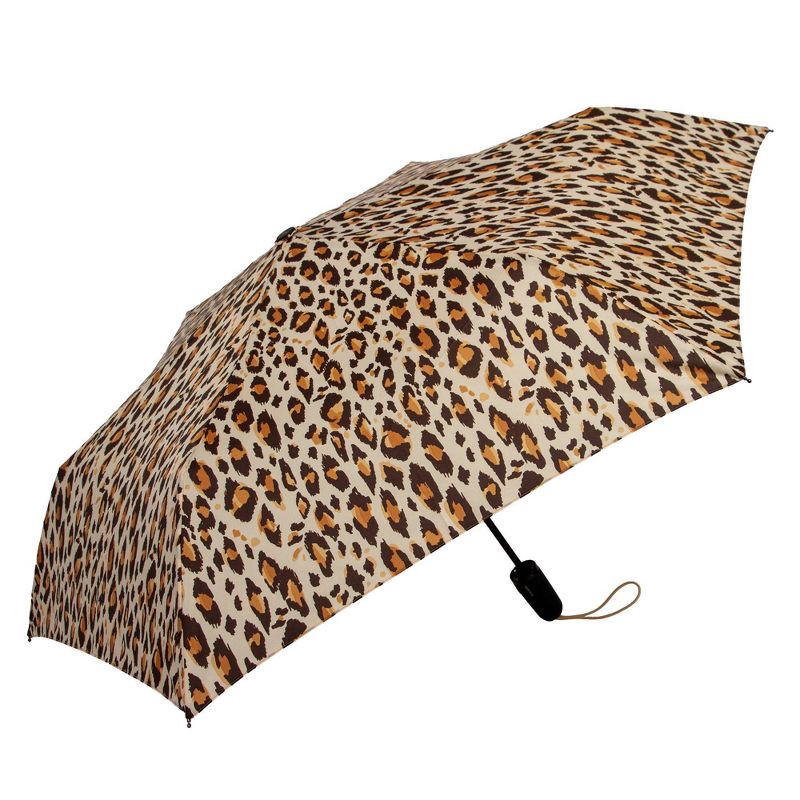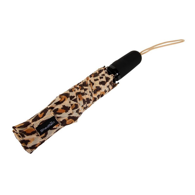 ShedRain Auto Open Auto Close Compact Umbrella - Tan Leopard Print: Telescoping Shaft, Polyester Canvas
