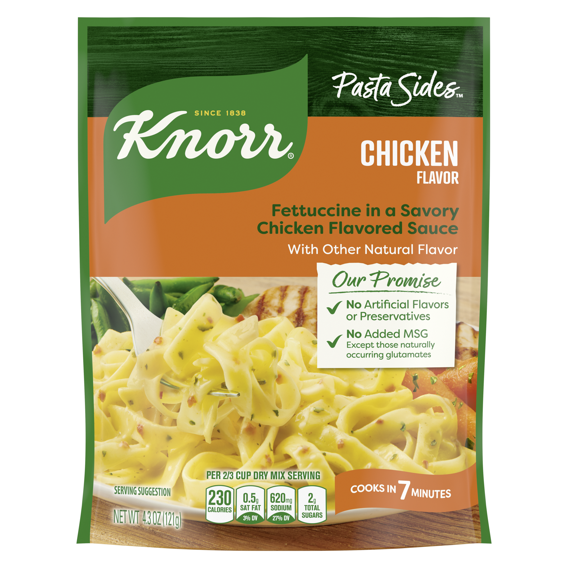 Make great-tasting meals for your family quickly and easily, with our delicious pasta sides. Knorr Pasta Sides Chicken expertly combines fettuccine noodles with red bell peppers, onion, garlic, and pa…